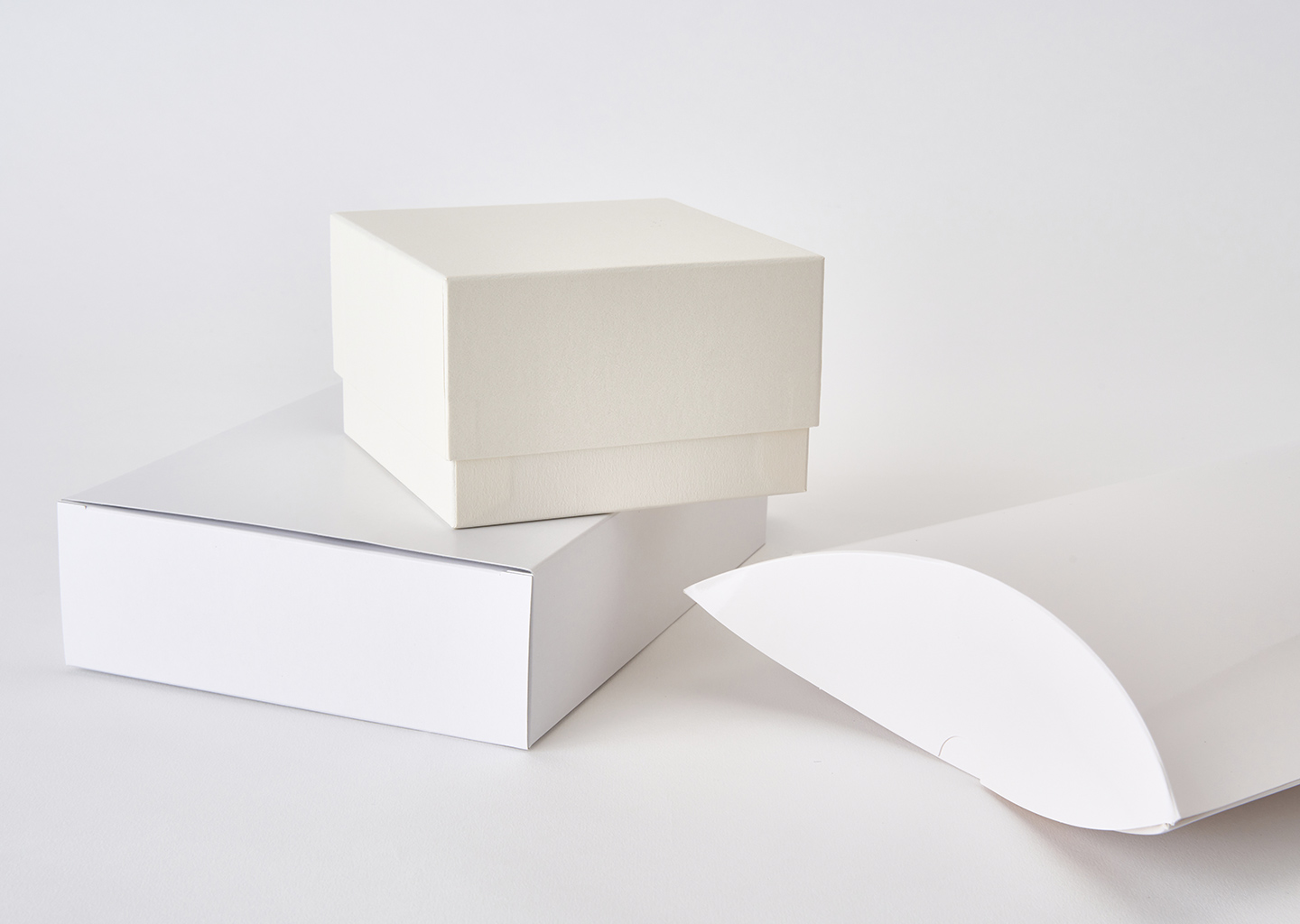箱型の形状で、梱包資材としての役割の他、素材や印刷等の装飾を加える事で高級感や販促効果を生み出す事が可能です。